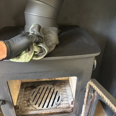 Our stove cleaning products are non-toxic and free from fumes, odours, and smoke — safely lifting away dust, ash, carbon, fingerprints, and dirt to restore that 'Back to Black' finish.