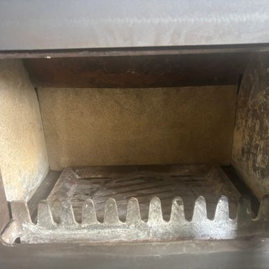You can see the new fire brick fitted here — it helps the stove burn more efficiently, gives off better heat, and adds an extra layer of protection.